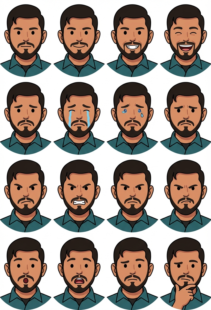 "Stickers including all sorts of emotions, in Flat / Minimalist Art style"