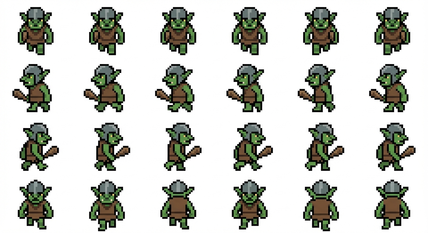 "make the mob aligned, make its style consistent. walking animation, in Pixel Art style"