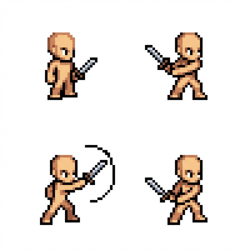 "pixel art,add sword, basic sword attack"