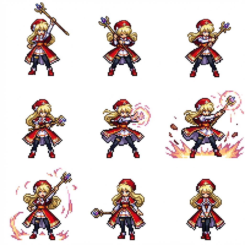 " langrisser2 style pixel character using magic with high final class, in Pixel Art style"