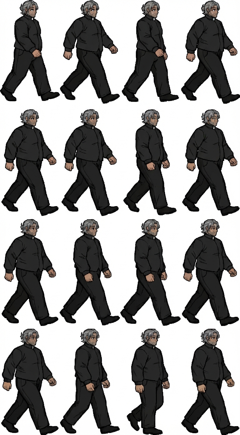 "chibi priest walking to the right, in Pixel Art style"