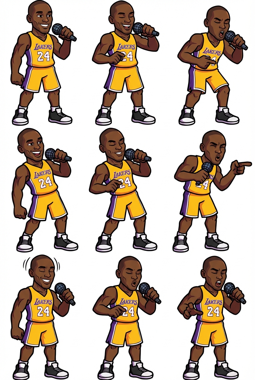 "create a spritesheet of a basketball player with a 24 jersey and a basketball shorts rapping with Friday Night Funkin'"