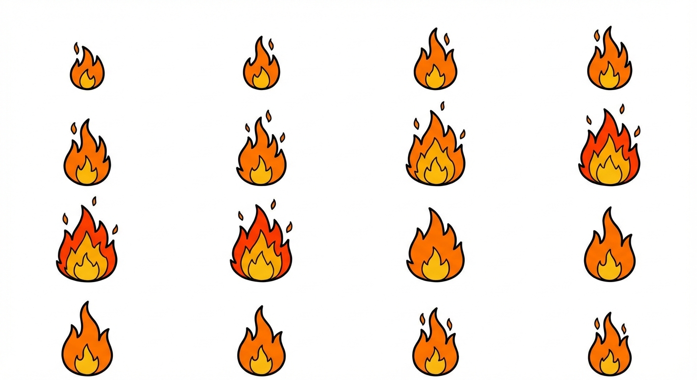 "Flame animation in 2d cartonny thickline art style"