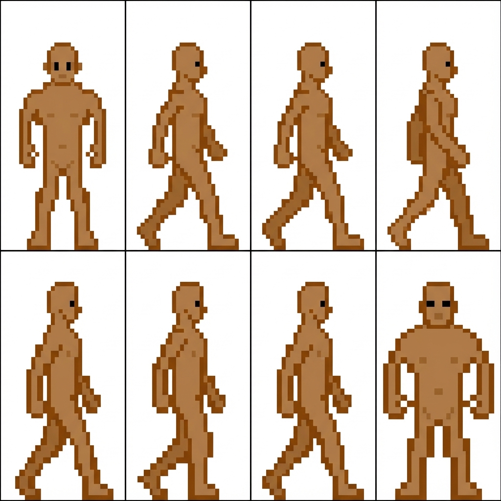 "fait moi une animation de marche en 8 frame pour ce personnage"