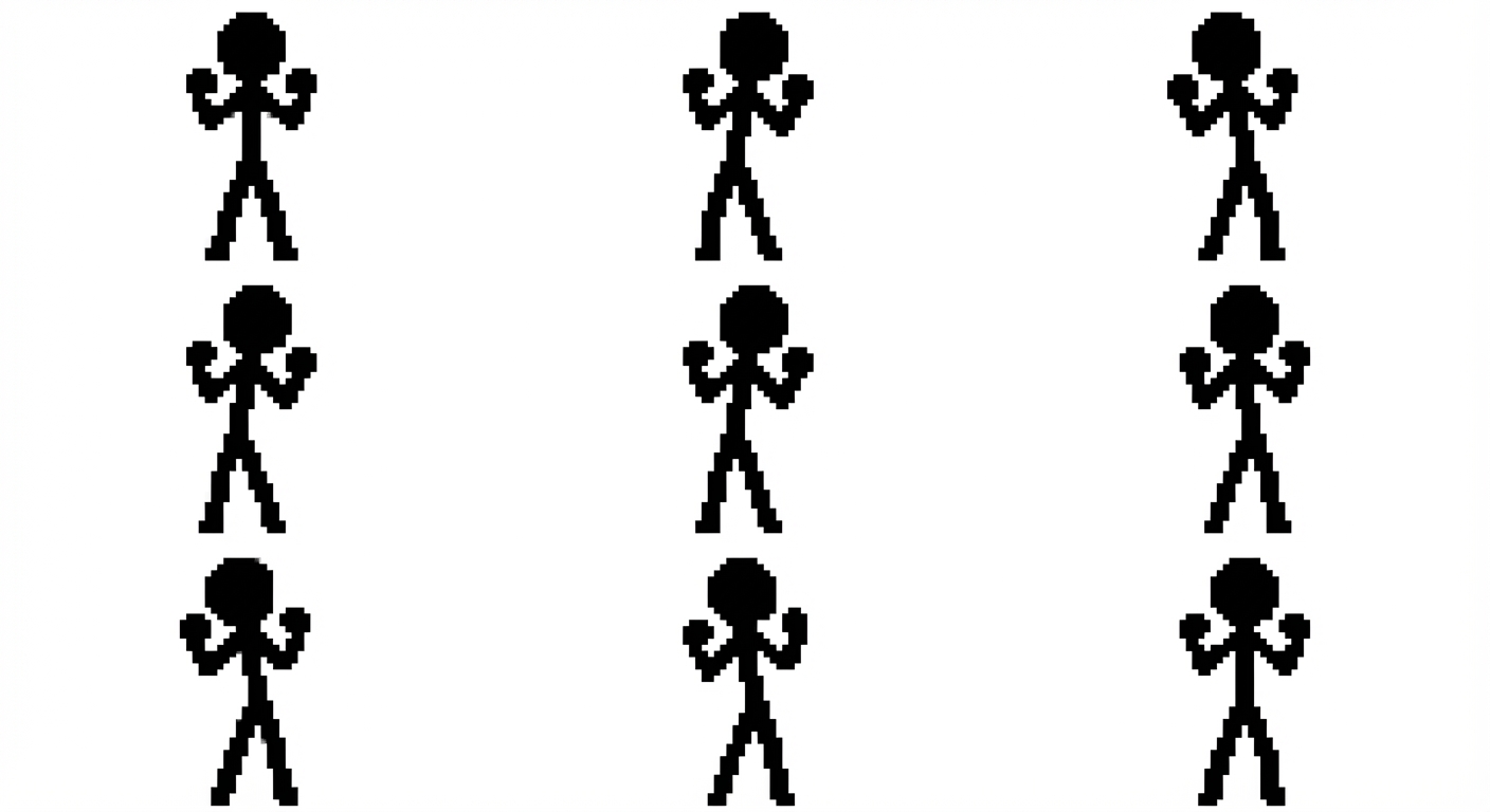 "A stickman idle animation with fists up swaying side to side, in Pixel Art style"