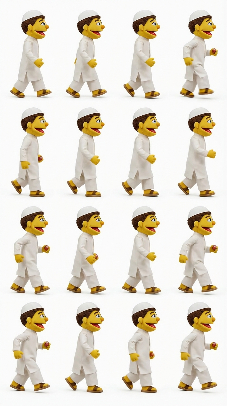 "make it to walk in same side by moving his legs and arms to back and in front of "