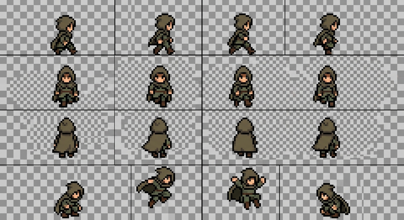 "him walking like in diffferent angles and jumping some too like a 2d rpg"