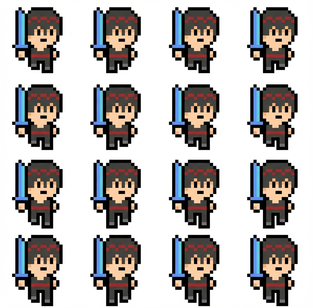 "que el personaje tenga movimientos de caminata, que el arma que tiene en su mano izquierda se mantenga recta en el aire y que paresca igual al original , in Pixel Art style"