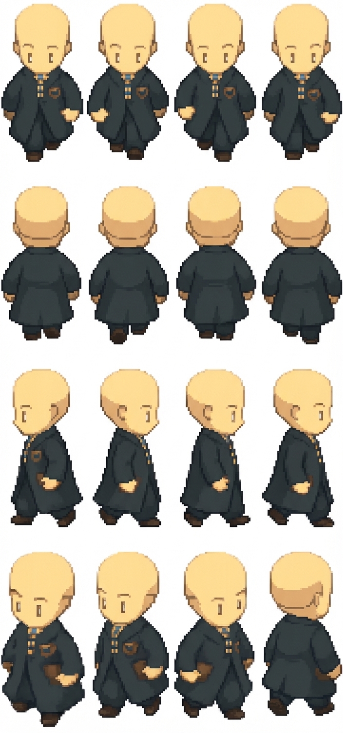 "Make a sprite sheet of him walking in every direction with several frames going every direction up down or left right even every corner"