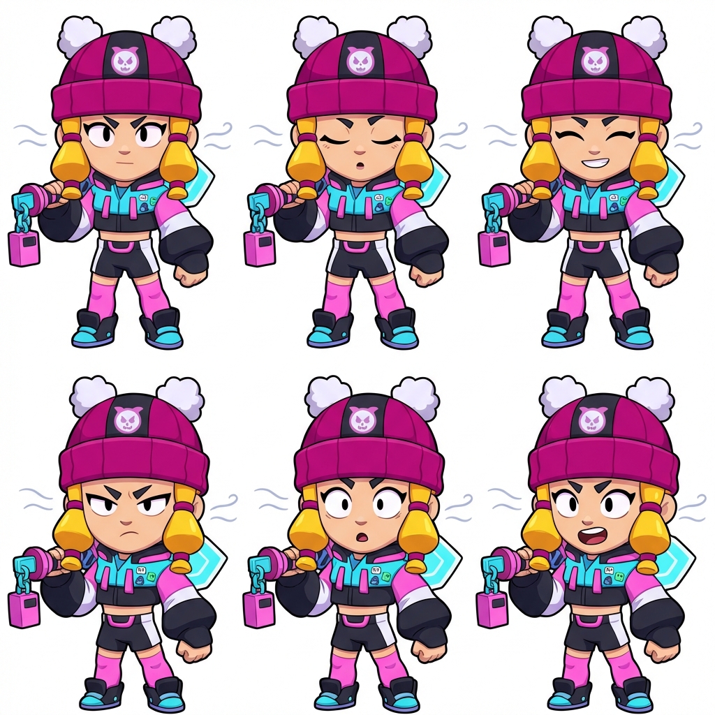 "Crea un sprite 2D de un personaje de anime, en vista frontal y estilo chibi o semi-realista según se vea mejor para animación. El personaje debe estar en posición estática, pero con expresiones y rasgos que puedan ser animados: ojos parpadeando o mirando a los lados, boca abierta y cerrada para hablar, cabello moviéndose suavemente como si hubiera brisa. Fondo transparente para fácil uso en animación. Iluminación suave, colores planos y definidos, estilo cel-shading, líneas limpias, detalles visibles en rostro, cabello y ropa, para que pueda ser usado en Adobe Animate y sincronizado con voz. Genera varias expresiones y versiones del sprite: neutral, feliz, enojado, sorprendido, hablando con la boca abierta. Cada sprite debe estar separado, en PNG o formato transparente"
