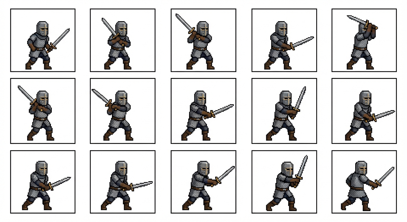 "Medieval Knight attack, in Pixel Art style"