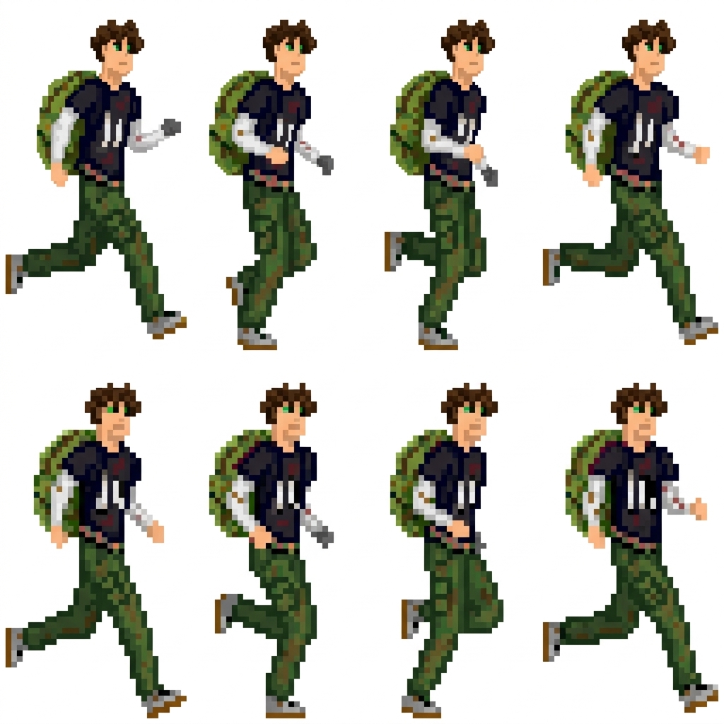 "Creame una animación de correr_RUN muy realista y manteniendo el diseño fel personaje hazlo muy bien recreada , in Pixel Art style"