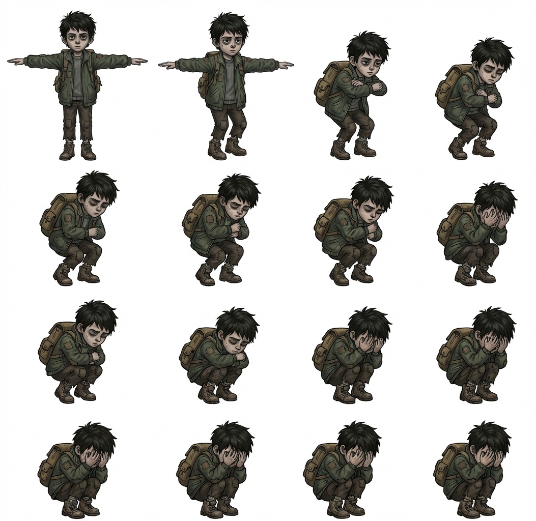 "i need a hiding animation for this chracter will be used in 2d game in unity ( sprite sheet)"
