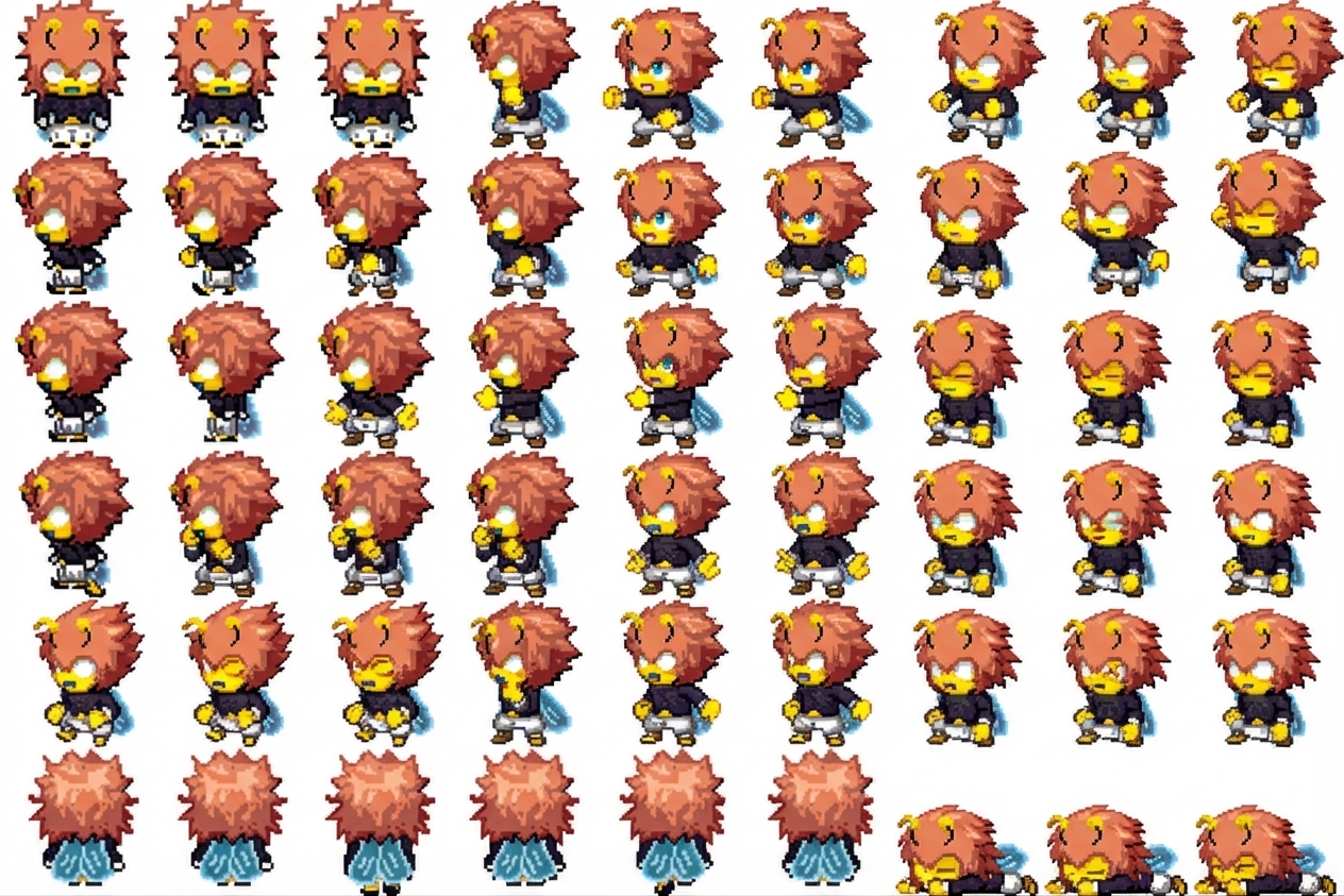 "Quiero que a la primera imagen le des las poses de la segunda imagen., in Pixel Art style"