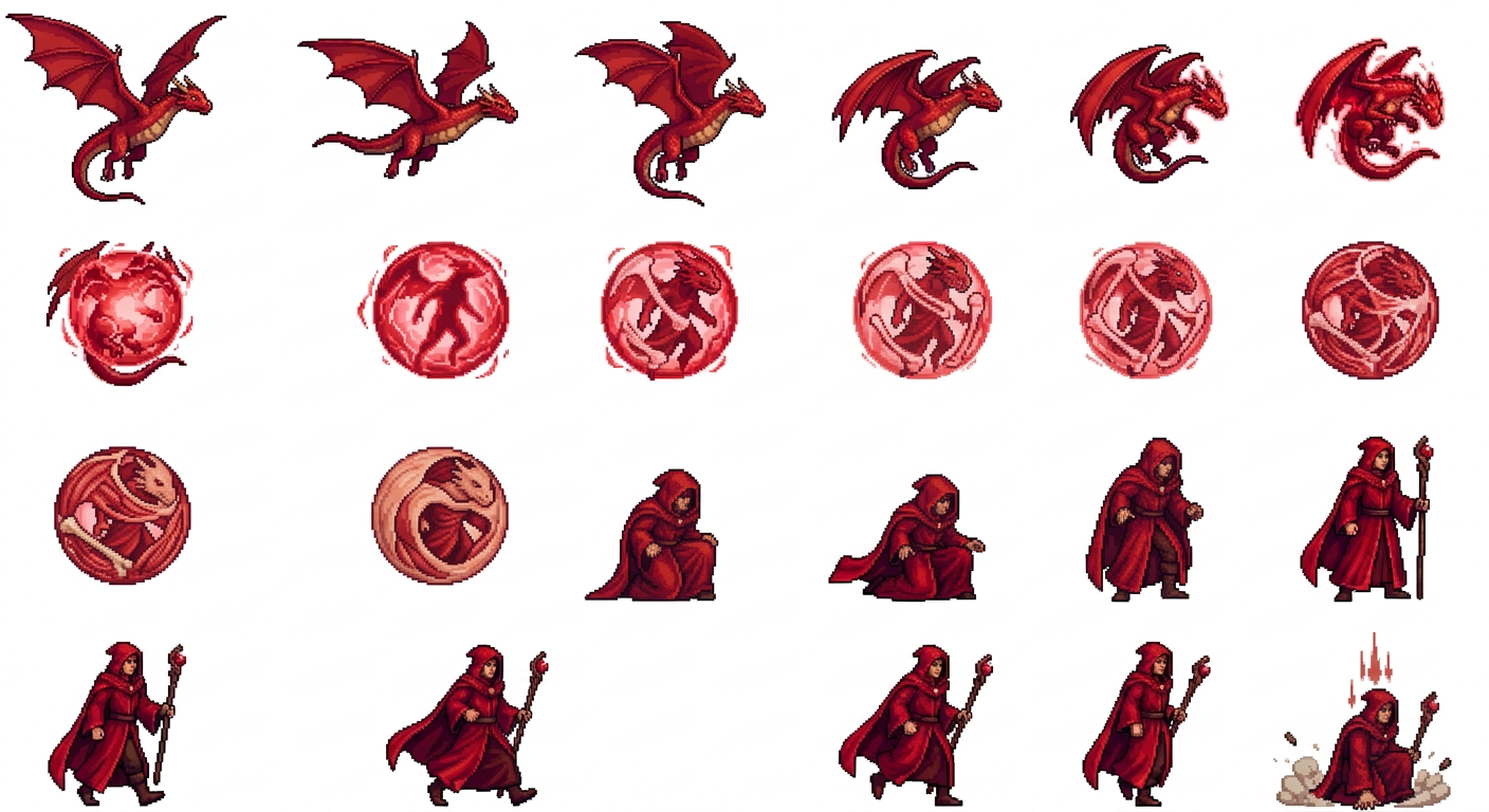 "a essence of a thought-form being falling from on high, as it transcends layer by layer of bone and muscle and skin for and wrap around his body before crash landing into reality as a real person, in Pixel Art style"