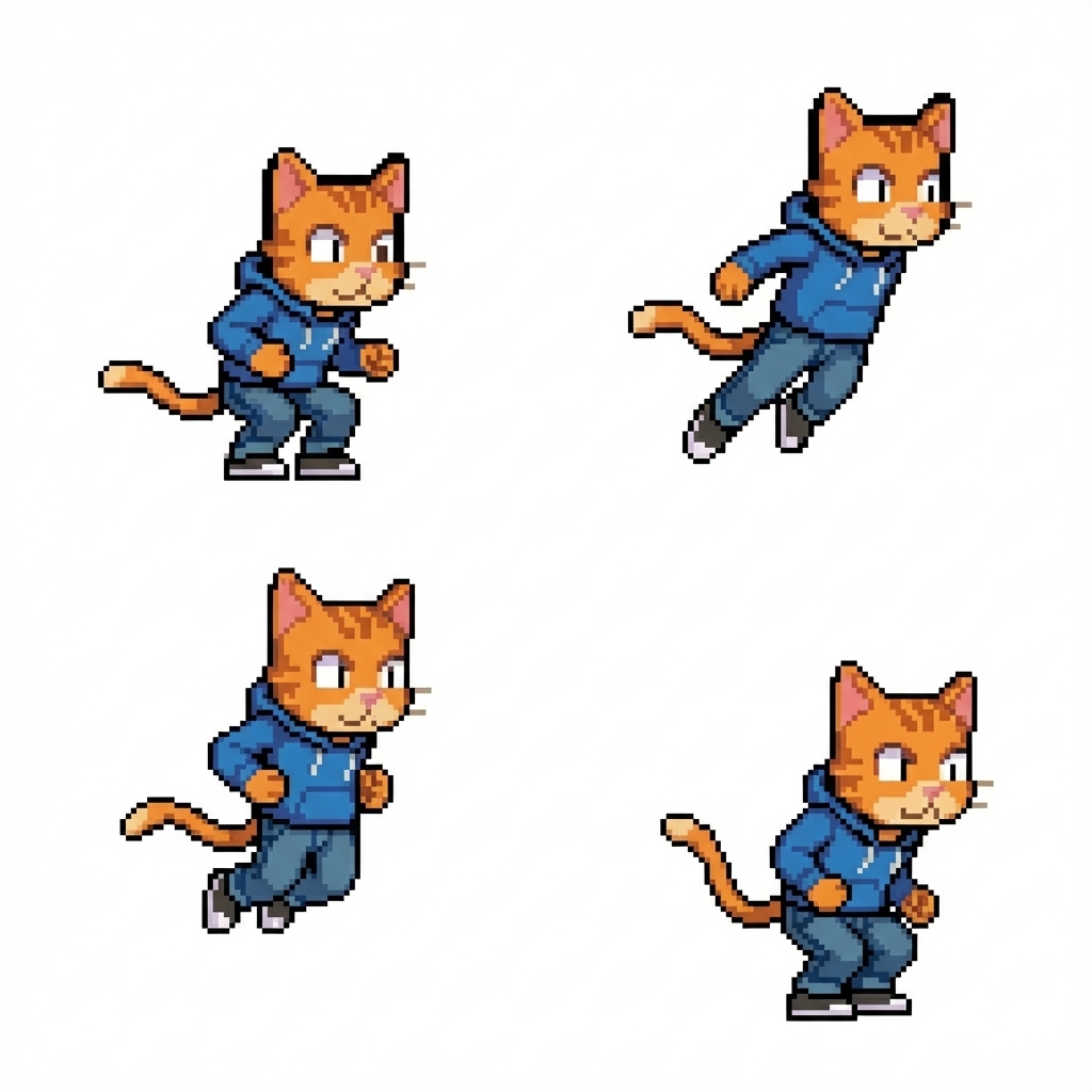 "cat jumping 2x2 at 1K resolution, in Pixel Art style"