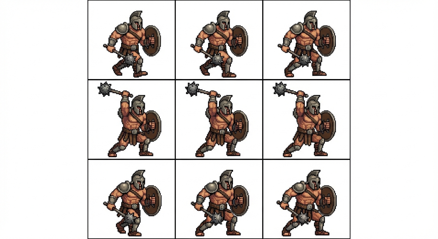 "im making a gladiator arena game, so i need some villians to fight off, give me a sprite sheet of something to fight off "