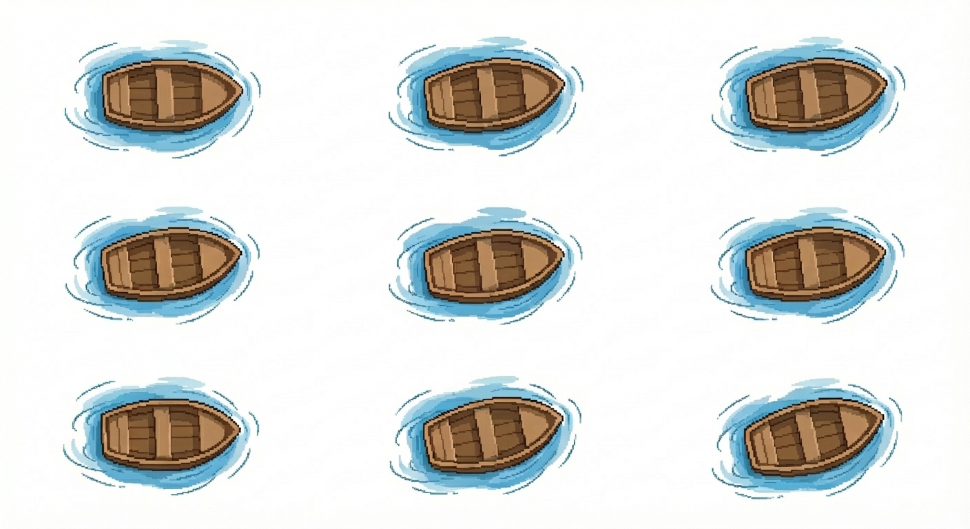 "Small boat without the sticks top down view, in Pixel Art style"