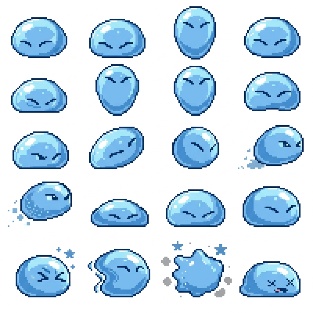 "include when the slime is attacking and taking when taking damage, in Pixel Art style"