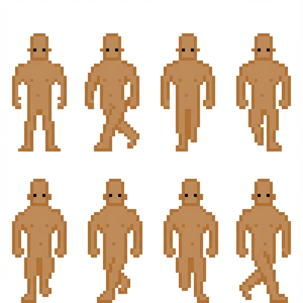 "fais moi une animation de marche en gardant la taille du personnage et le sens dans lequel il est orienter"