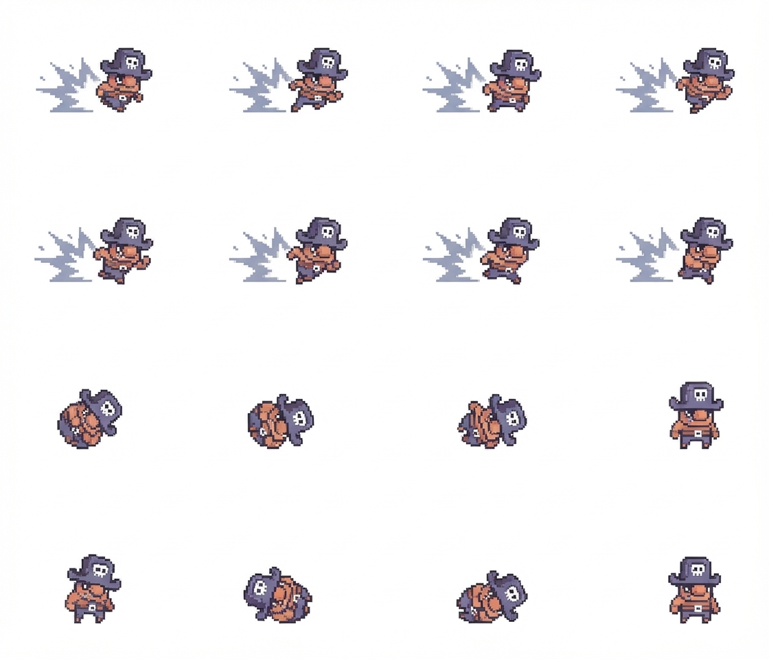 "I need you to take the provided image and generate a matching animation for the character dashing as well as dodge rolling."