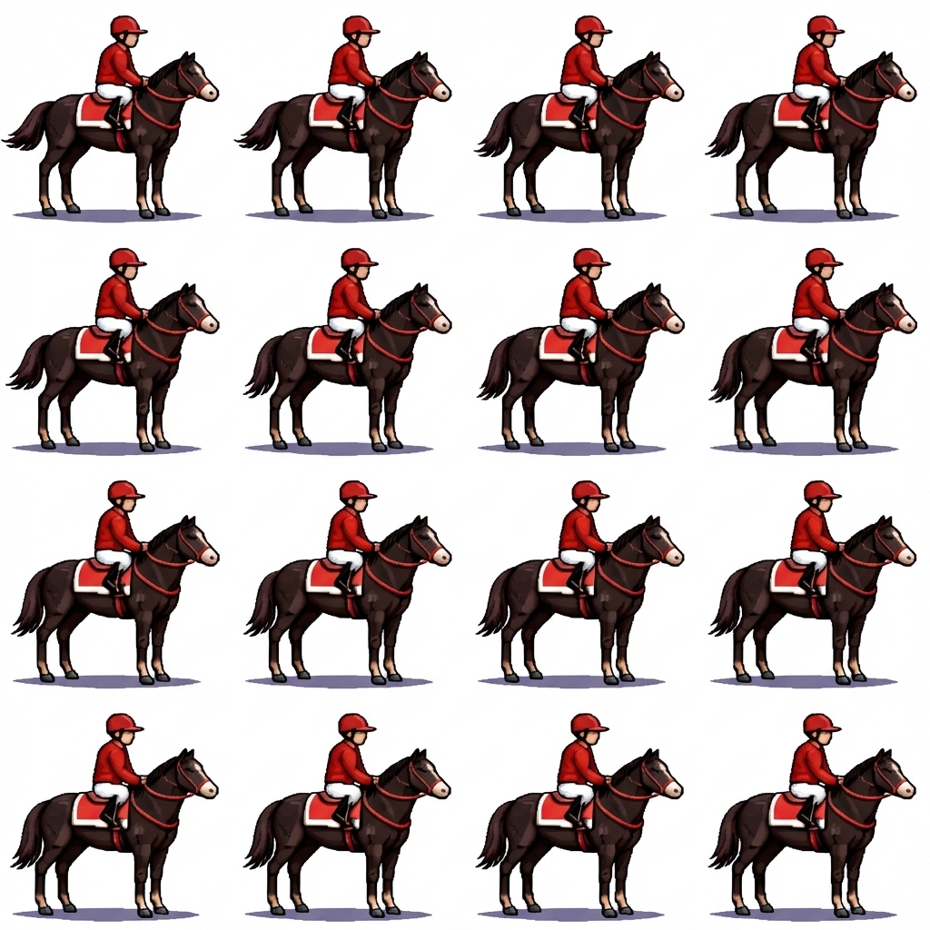 "The horse and jockey should be idling, mentally preparing for their race. The horses tail should sway back and forth. Both should breathe subtly. "