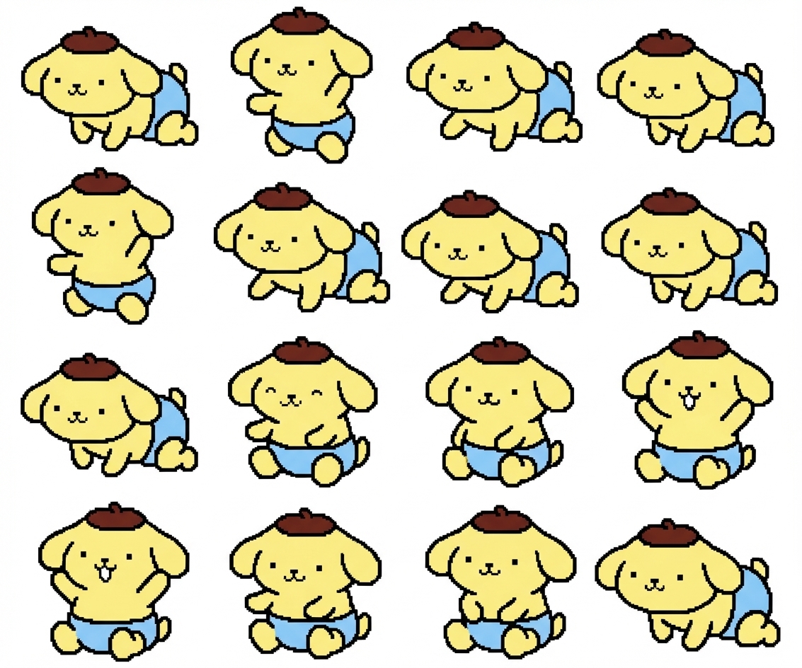 "让这个布丁狗宝宝动起来, in Pixel Art style"