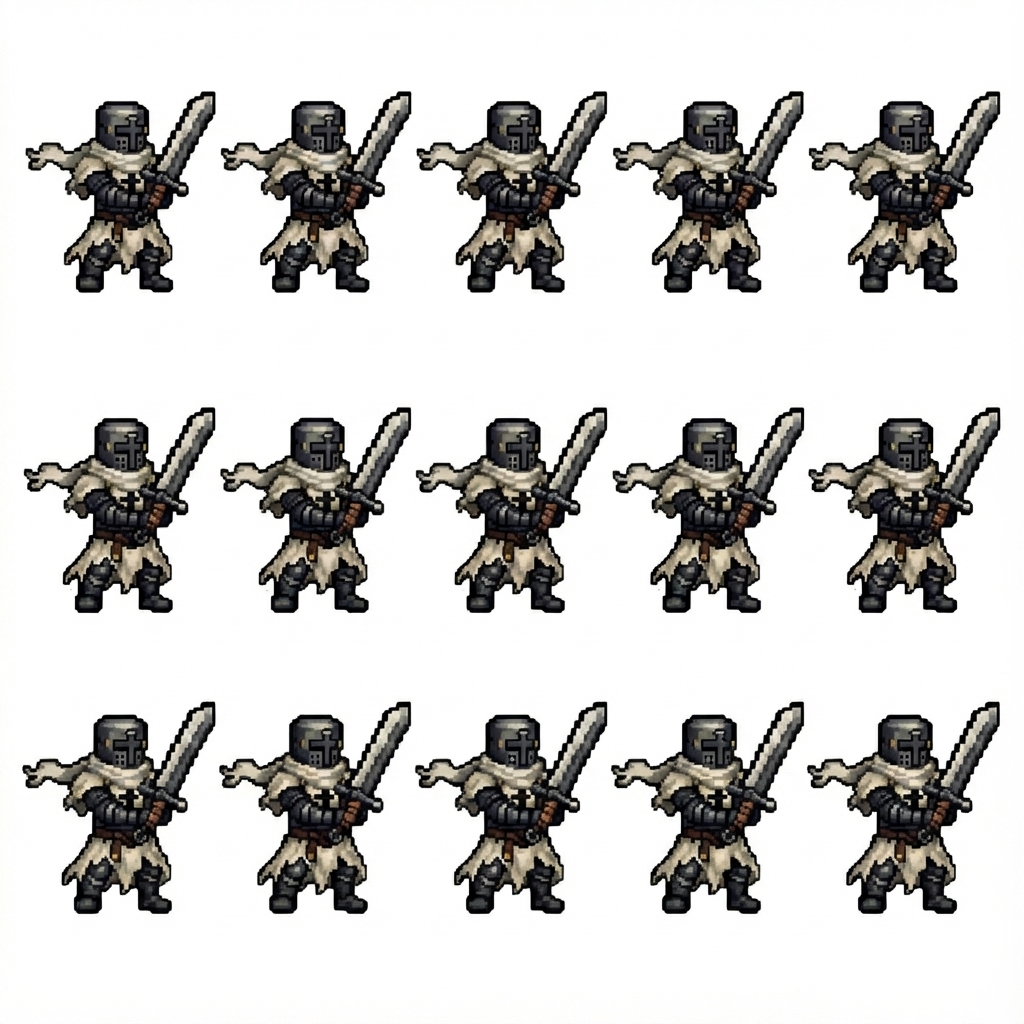 "Please create an action where the character stands still, maintaining the same standing position, and create 10 frames for me."