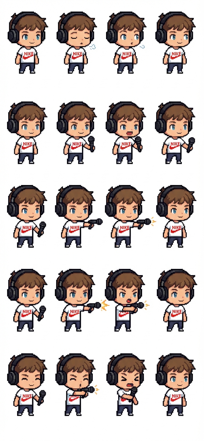 "mache aus dieser pereson ein 2d pixelart. die beine solllen im verhältnis zum oberkörper relativ klein sein damit das pixelart niedlich aussieht. er braucht eine idle und eine schuss animation"