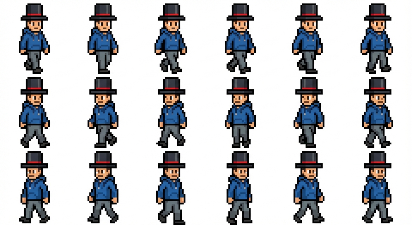 "16 x 20 dude with blue hoodie and gray pants and tophat with a red stripe on it"