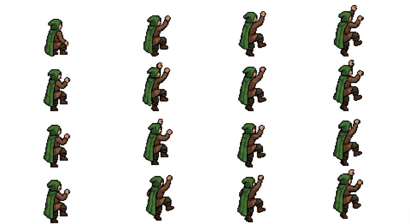 "make an animation side climbing using this charachter"