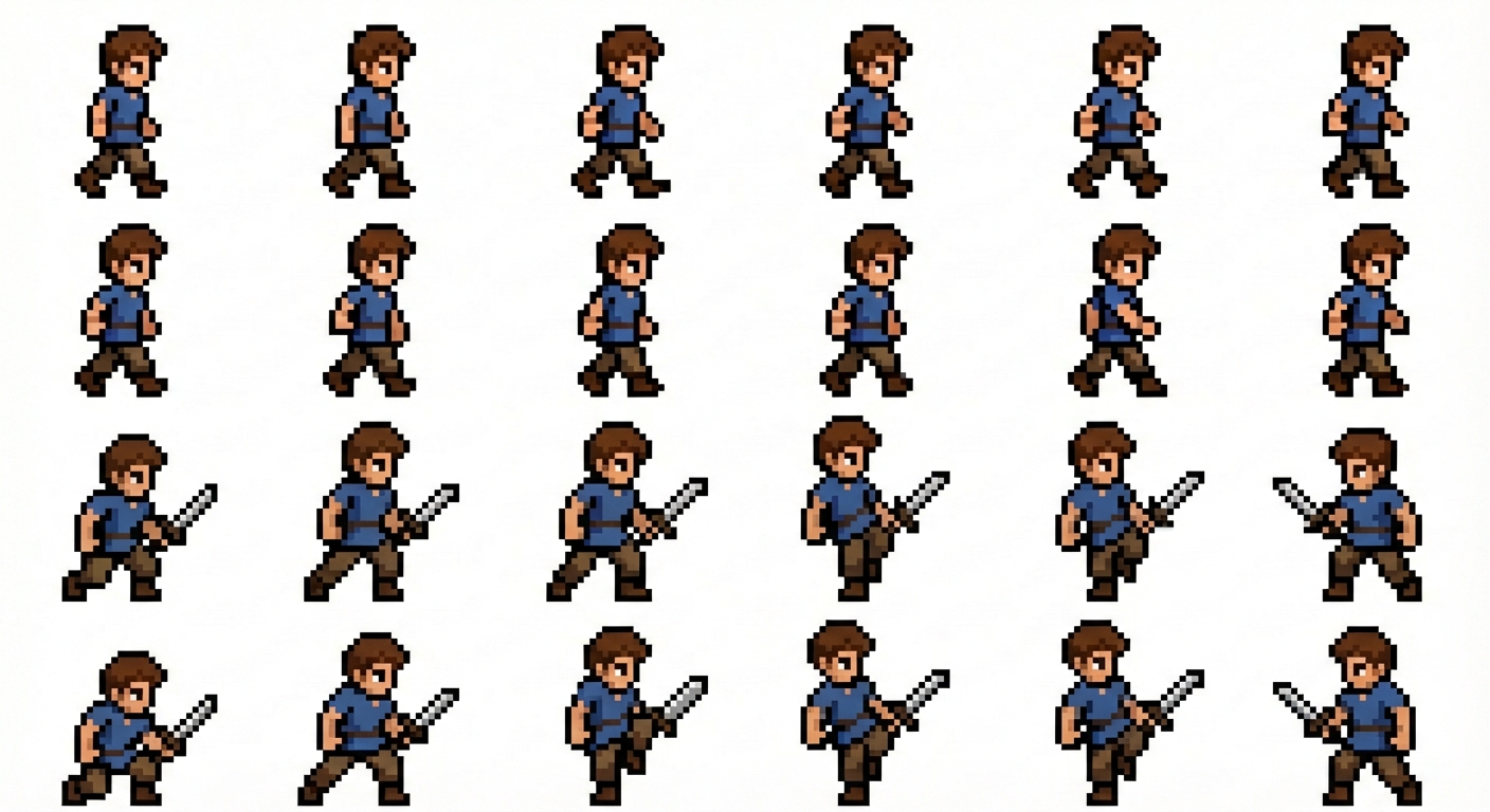 "2d pixel art knight, with and without sword, in Pixel Art style"