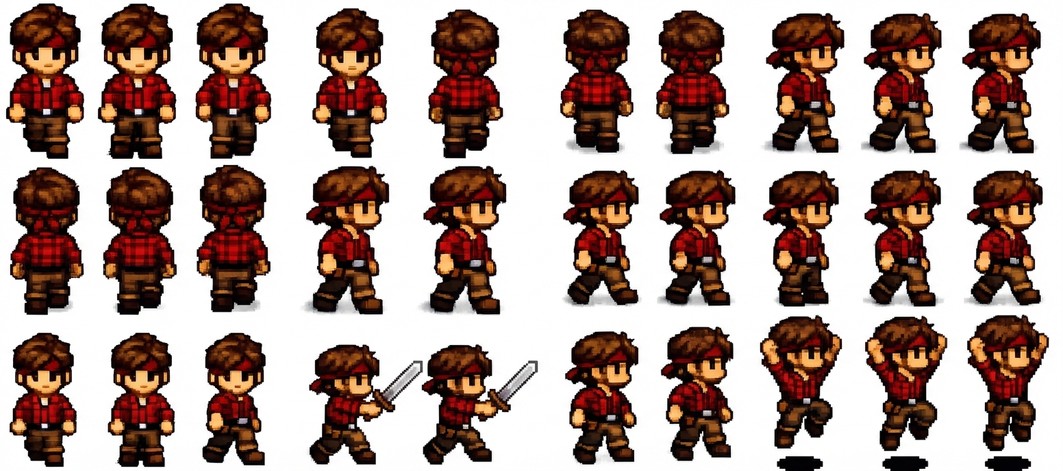 "Create a stardew valley like character based on the image uploaded and create animations in up down right left attack and jump"