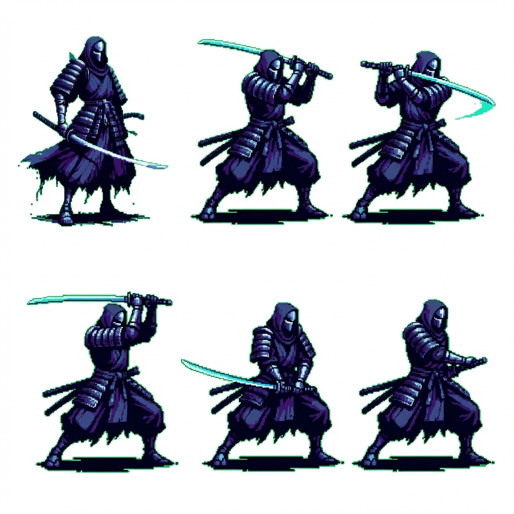 "cyberpunk samurai swinging a katana, in Pixel Art style"