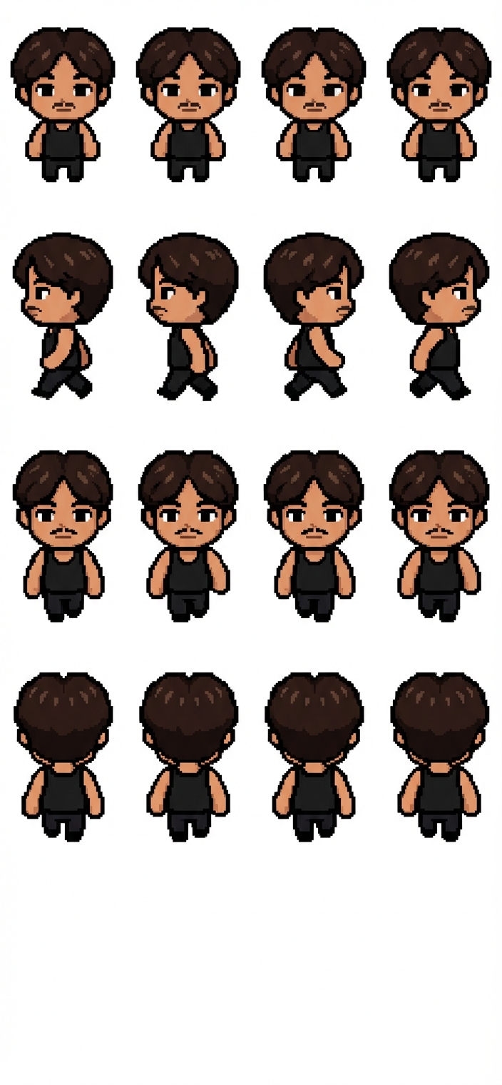 "ein 2d pixel art von der peson. die beine sollen im verhältnis zum oberkörper eher klein sein damit das pixelart niedlich aussieht"