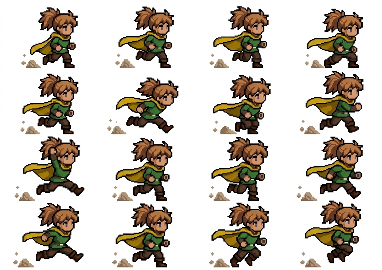 "make a 2d sprite animation of the pasted image sprinting, in Pixel Art style"