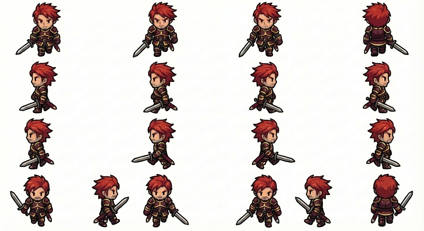 "Spikey, windswept Red hair, older male, slight 5 o clock shadow, dark maroon colored armor; trimmed with gold "