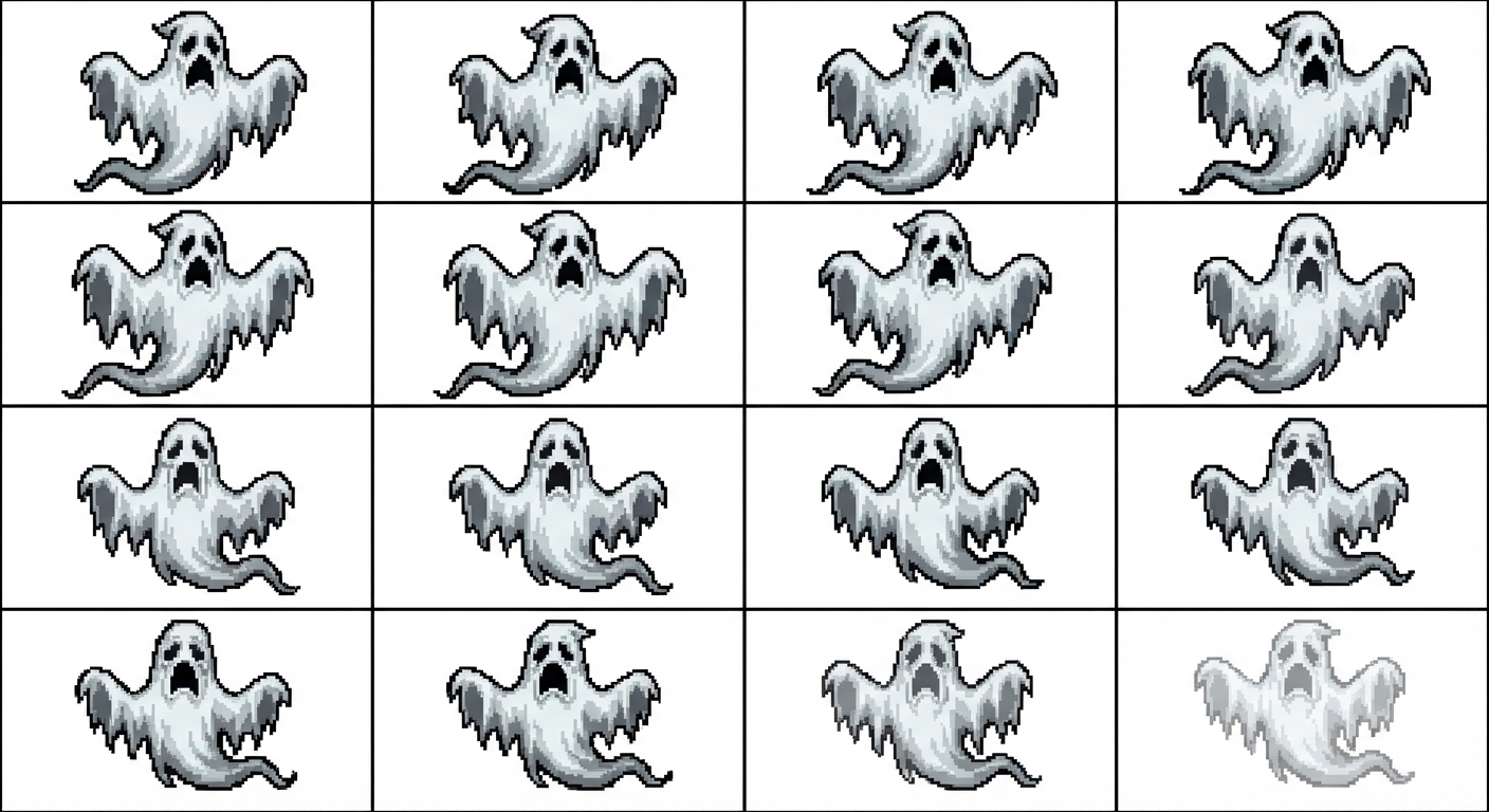 "floating white ghost for horror game, so it should be scarry and big, in Pixel Art style"