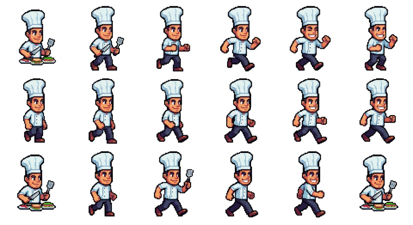 "Sandwich maker guy with chef's hat, in Pixel Art style"