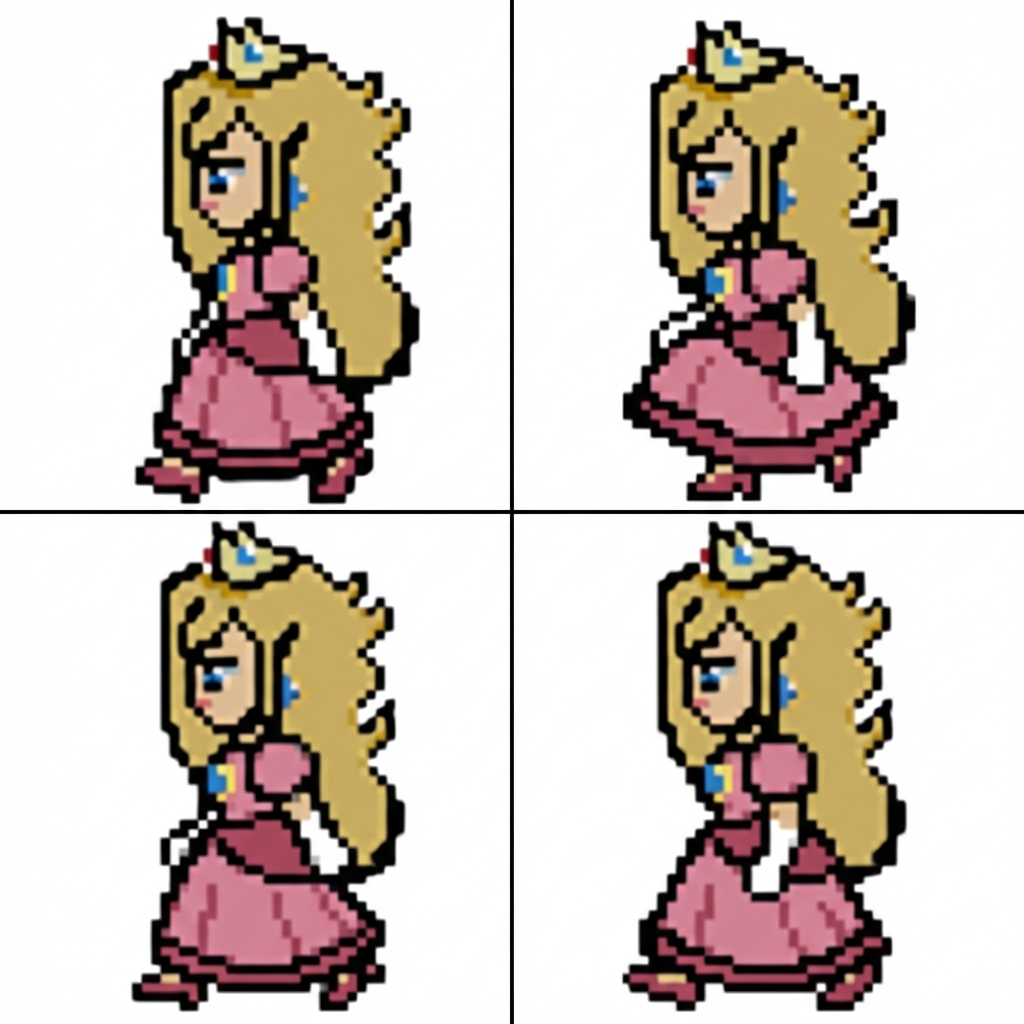 "can you make this images into 4 singiler ones so every step is on a diffrent image and kann you make the images 55x55 and remove the white background so its just the charakter"