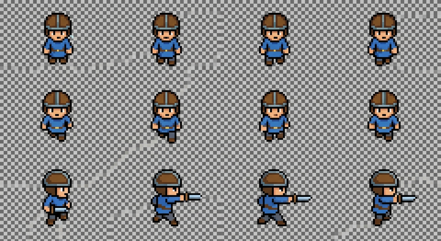 "buatkan aku karakter 2d top down, idle , walk, attack"